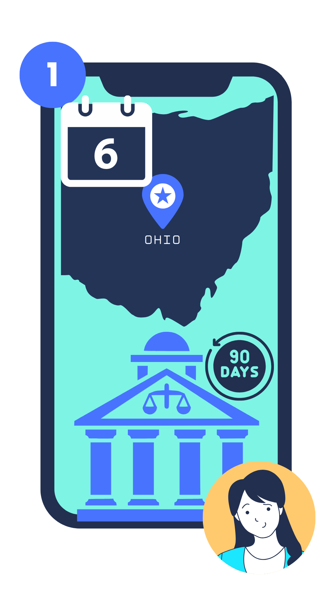 To file for divorce in Ohio, at least one spouse must have lived in the state for a minimum of six months. You must also have been a resident of the county where you’re filing for at least 90 days. If you live in Columbus, you’ll typically file in Franklin County.